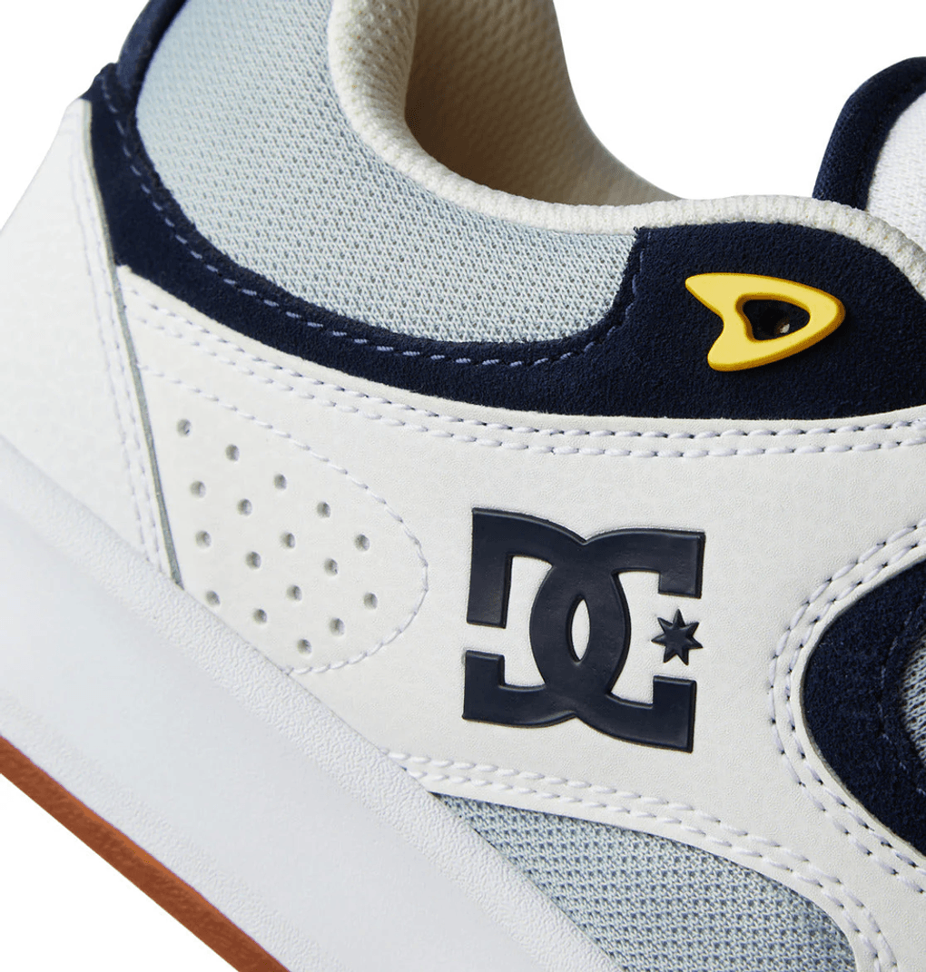 Влезте в стил и комфорт с мъжките обувки DC Shoes Kalynx Zero в бяло/сиво. Този иновативен дизайн обединява два легендарни силуета за уникален външен вид, който се откроява на улицата и в действие.
